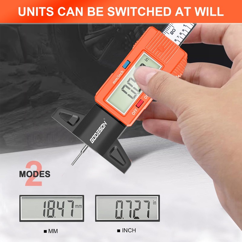 - 1.Accurate measurement: GODESON tire tread depth gauge with 1 inch / 25.4mm range meets the measurement needs of most vehicle tire depth. Accuracy :0.01 mm
