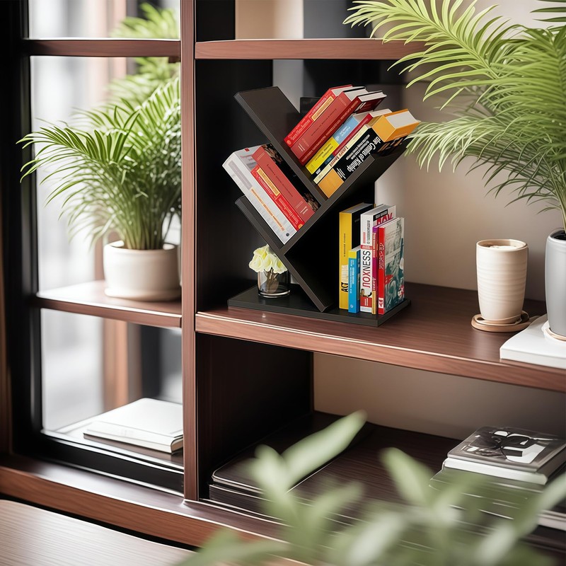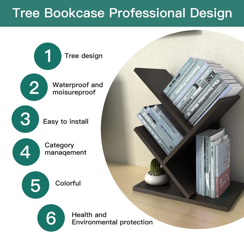 • Decorative Desk bookshelfclassic modern style tree bookshelf with a charming retro appearance and practical design. Cute little bookshelf, suitable for small spaces, perfect for displaying your decorations, trinkets, photosCD Novels, speakers, or plants. It can be used as a unique decoration for schools, offices, apartments, living rooms, study rooms, and bedrooms. This wooden bookshelf is perfect for any room and is a perfect piece of small furniture!