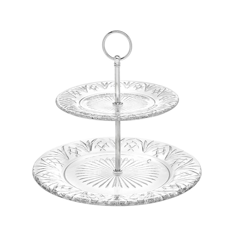 - Dublin Crystal Collection 2 tiered serving tray platter plates compliment any decor.