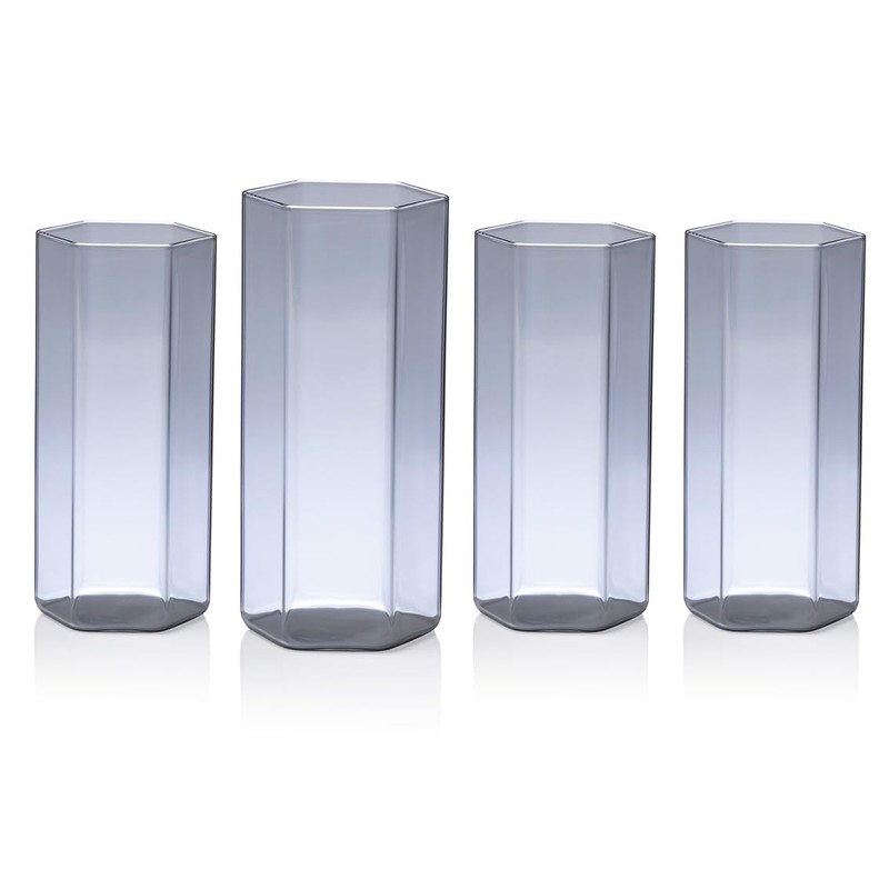 Godinger Highball Glass, Tall Glass, Drinking Glass, Drinking Cup for Juice, Water & Cocktails, Smoke Glasses, Set of 4, Hexagon Shape, 11oz