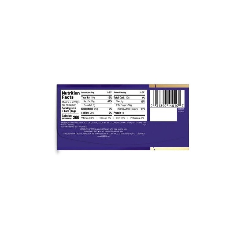 GODIVA MASSIVE PRICE DROP!! FREE SHIPPING!! GODIVA 72% Cacao Dark Choc. Mini Bars 3.1oz