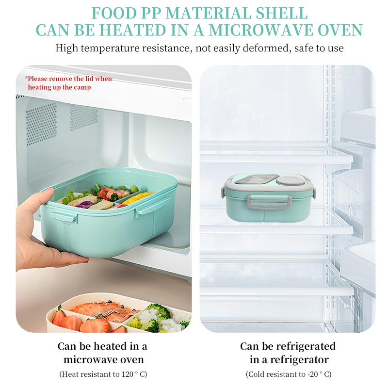- 【Integriertes Besteck & Saucenbecher】 Kommt mit einem speziellen Besteckfach, das eine Gabel und einen separaten Saucenbecher mit versiegeltem Deckel enthält, damit Sie Ihre Mahlzeiten jederzeit und überall genießen können.