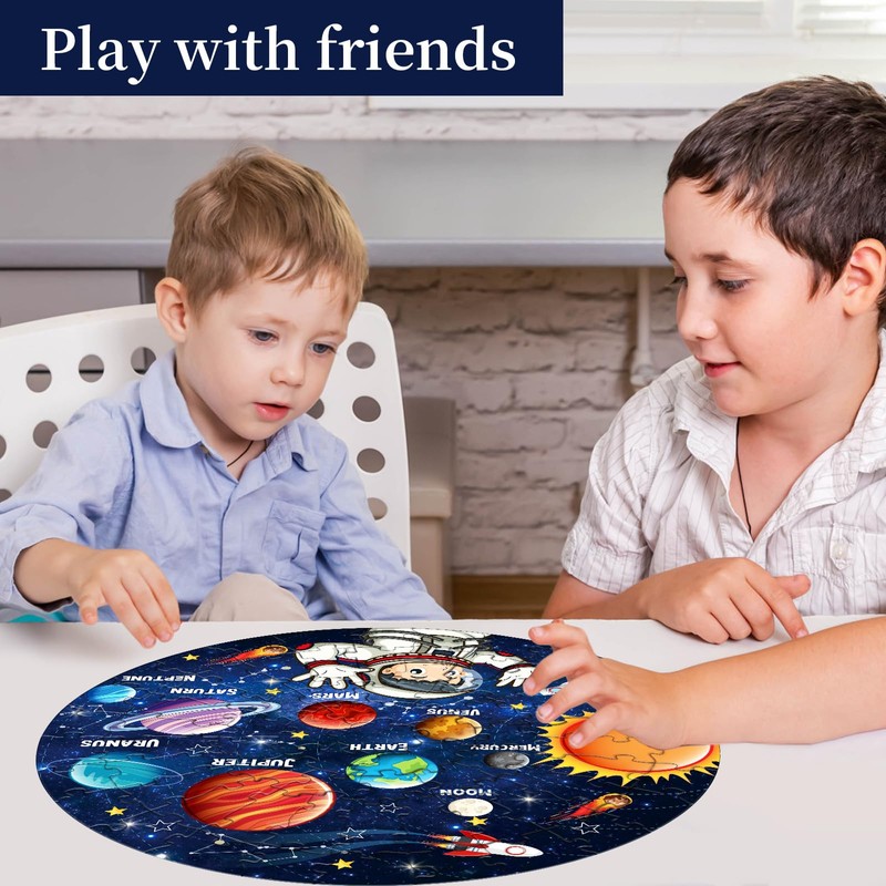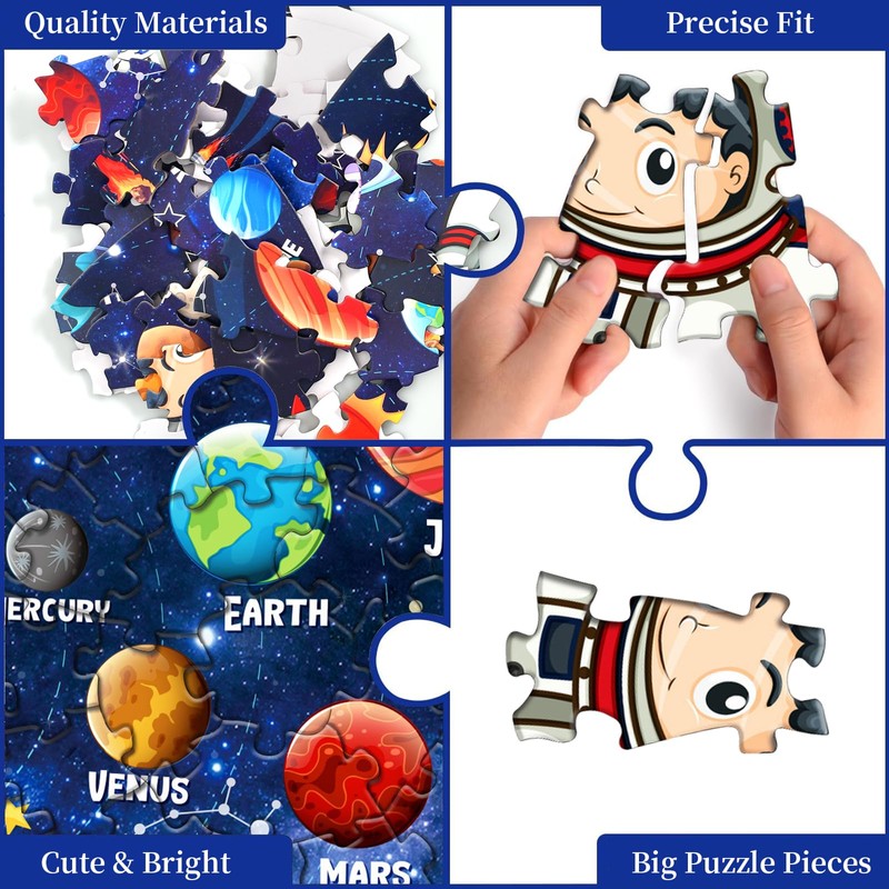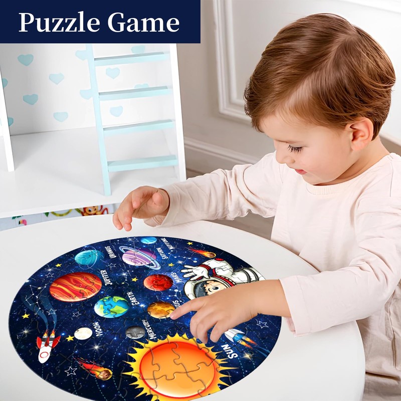 - Kids Ground Puzzle: It consists of 71 puzzle pieces with colorful cartoon planets, sun, rockets, etc., which will surely amaze children
