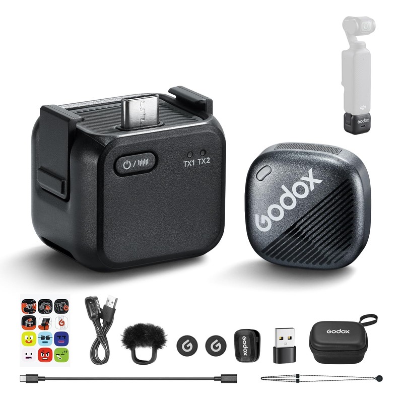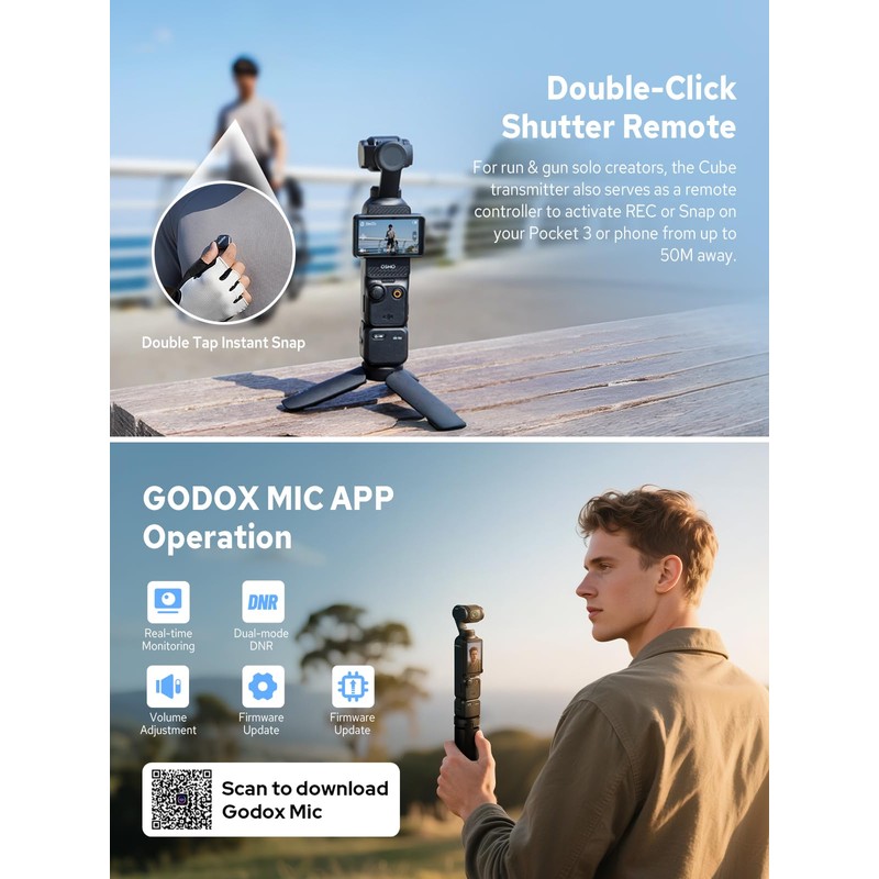 Godox Cube-OP3 Wireless Microphones, 48 kHz/24 bit Hi-Res Audio, Dual Mode Noise Reduction, 2.4G Wireless Transmission, 200 m (656 ft.) Lavalier Microphone Compatible with DJI OSMO Pocket 3, for Phone
