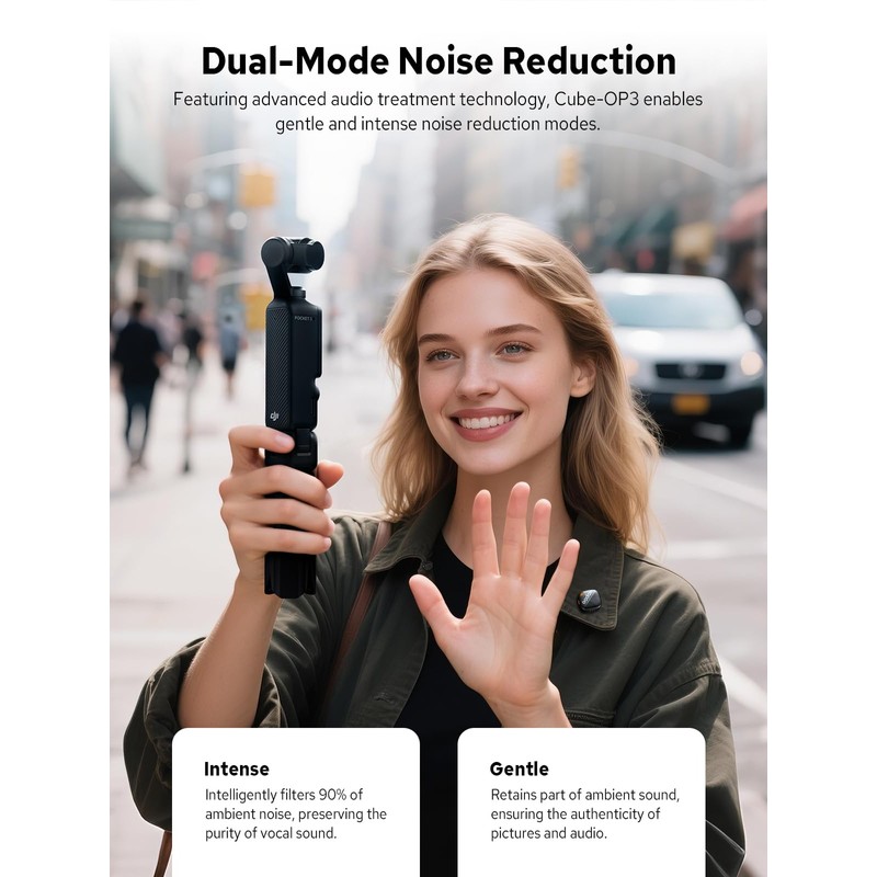 - Dual-mode noise reduction: the Cube OP3 has advanced noise reduction technology that effectively minimises unwanted ambient noise from quiet interiors to hectic traffic noise for optimal recording