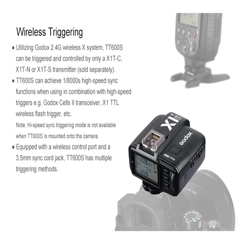 Godox Flash TT600S - 2.4G Wireless X System, High-Speed Sync, Compatible with Sony DSLR Cameras. Powerful GN60, Quick Recycle, and Versatile Flash Modes
