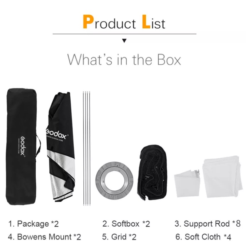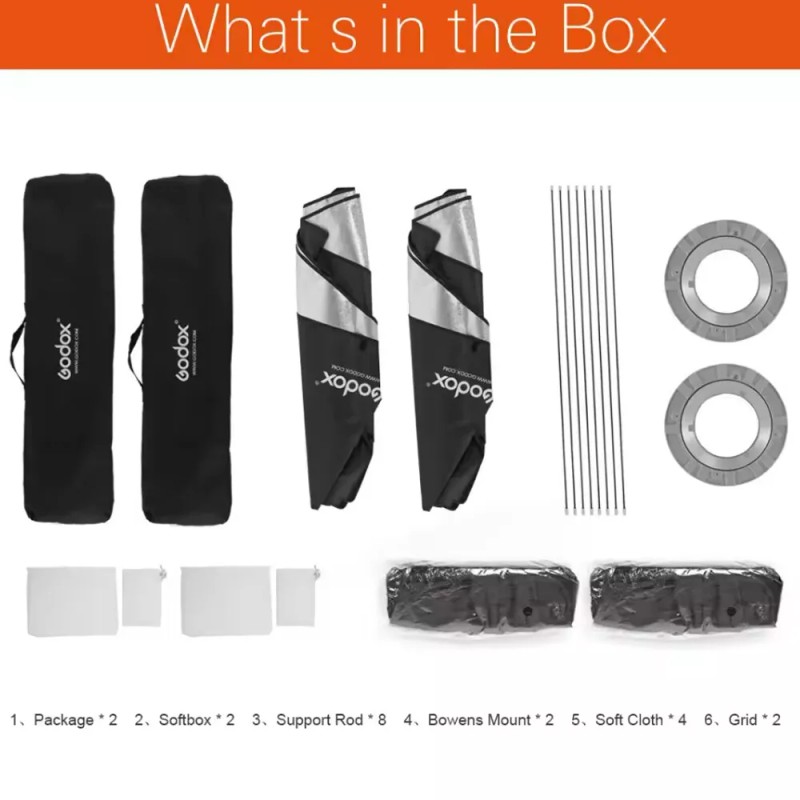 Godox US 2 Packs Godox FW 30*120cm Bowens Mount Softbox with Grid for Studio Flashes