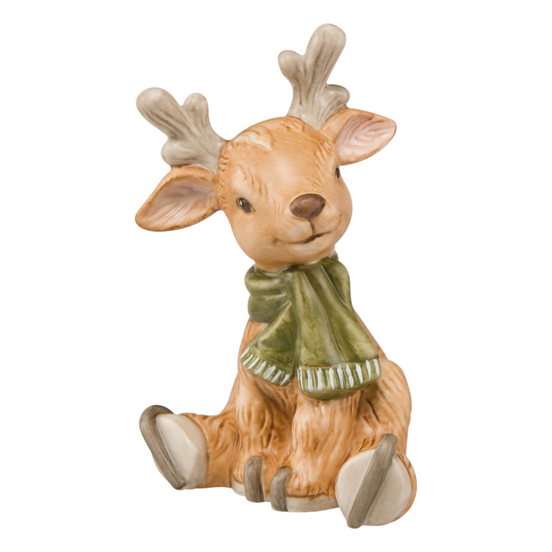 - The reindeer with a green scarf around the neck is an eye-catcher on the sideboard or in the display case
