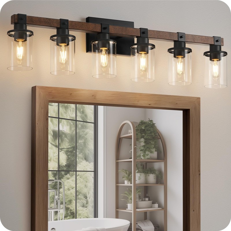 GOEBLESON 6-Light Bathroom Light Fixture, Vanity Lights for Bathroom with Glass Shade, Rustic Bathroom Light Fixtures, E26 Base F12BD05