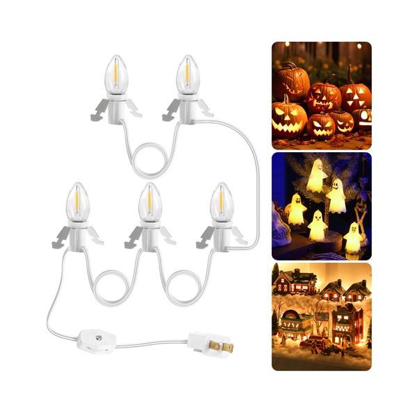 GOEBLESON Christmas Village Lights, Decoration String Lights 10.5Ft with 5 C7 LED Bulbs, Warm White, with Socket and Switch, for Christmas Snow House,Pumpkin Crafts,Holiday Decoration W07VL05