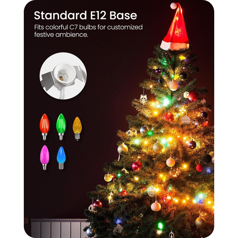 - Christmas House Replacement Light Set: The 10.5 foot string lights feature 5 C7 candle-style bulbs on standard E12 bases. You can easily swap in colored, dimmable, or twinkling bulbs to create your perfect holiday vibe