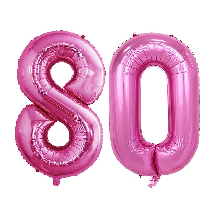 GOER Number 80 Balloons for 80th Birthday Party Decorations,42 Inch Jumbo Foil Helium Balloons for 80th Anniversary (Hot Pink)