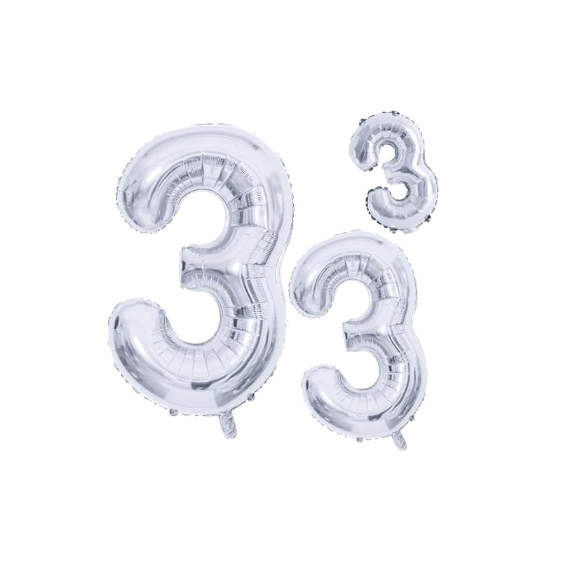 GOER Silver Foil Balloons Number 3,Huge Number Balloons for 3rd 33rd Birthday Party Supplies Anniversary Decorations(3 pcs,42 inch,32 inc,16inch)