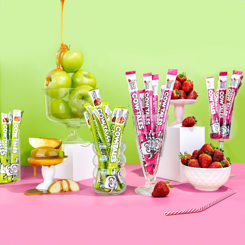 - SWEET SHOPPE VARIETY PACK: Indulge in both Goetze's Strawberry Smoothie and Caramel Apple flavored Cow Tales with this convenient pack! These fruity, sweet, and soft caramel treats bring a delightful taste of nostalgia in every bite.