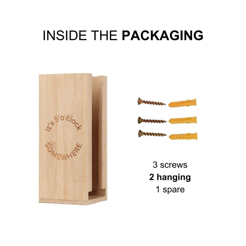 GoFika Can Cooler Holder & Dispenser Wall Mounted Bamboo Engraved 'It's 5 o'clock somewhere' Storage for Home & Bar