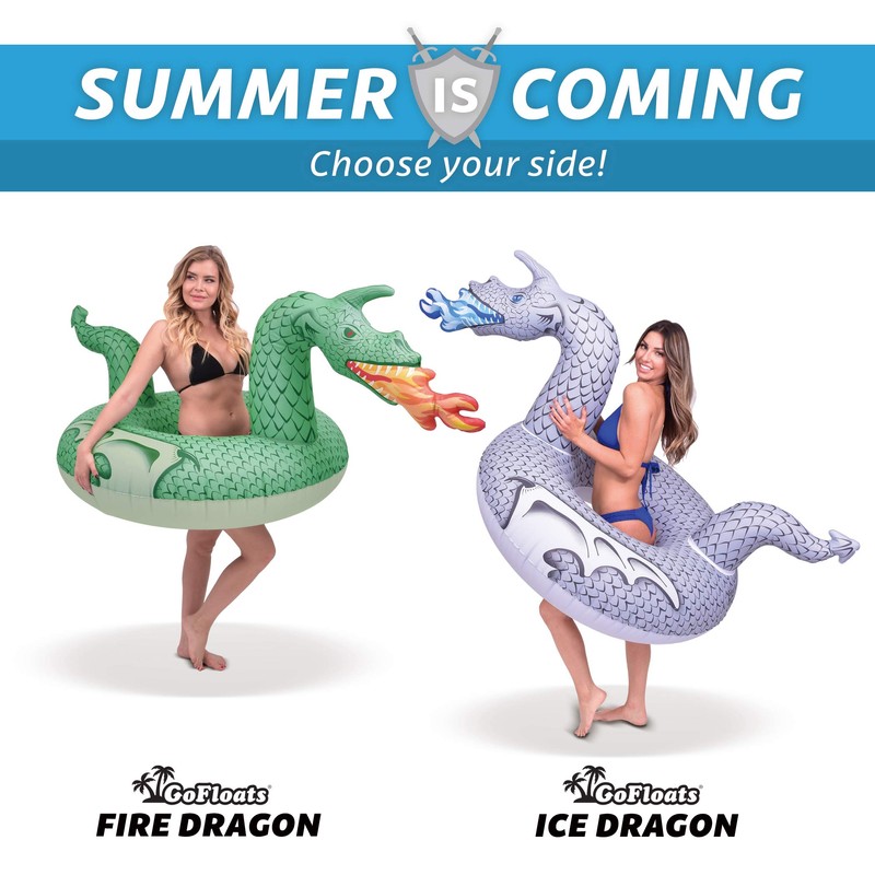 - SET YOUR SUMMER ON FIRE: The Original GoFloats Fire Dragon Party Tube - Reign the iron throne this summer as King or Queen of the Dragons with the fun and affordable GoFloats Fire Dragon