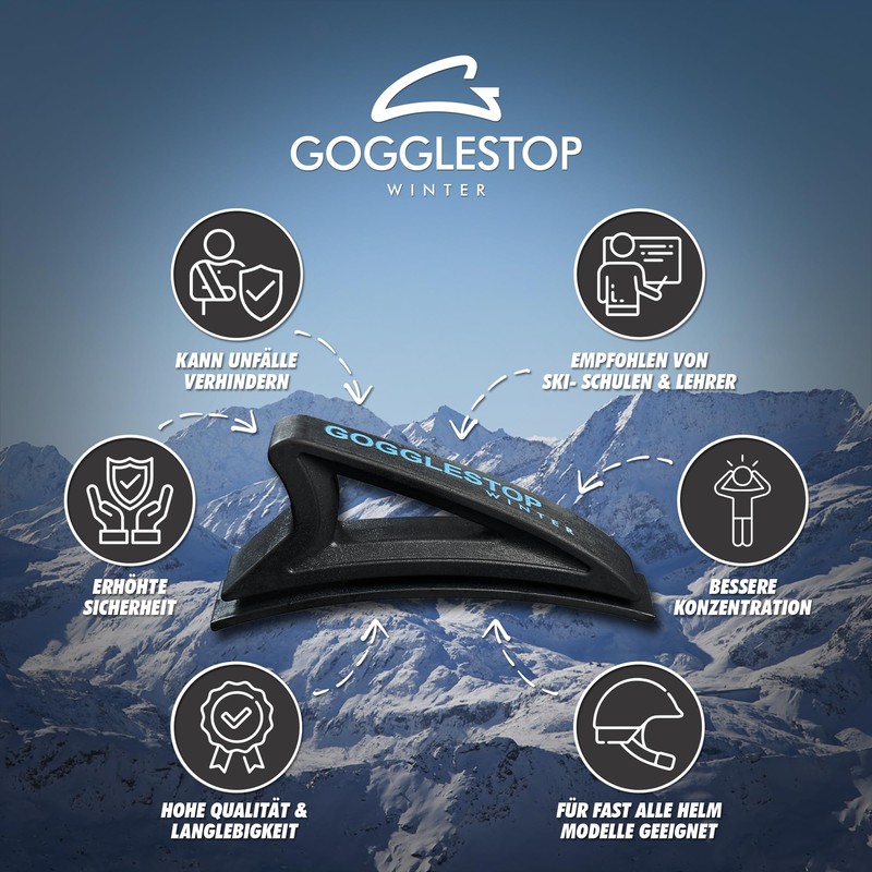 - Perfect for winter sports: designed for use when skiing or snowboarding, GOGGLESTOP is an indispensable accessory for winter sports lovers. Enjoy unrestricted driving fun without worrying about a secure hold of your equipment.