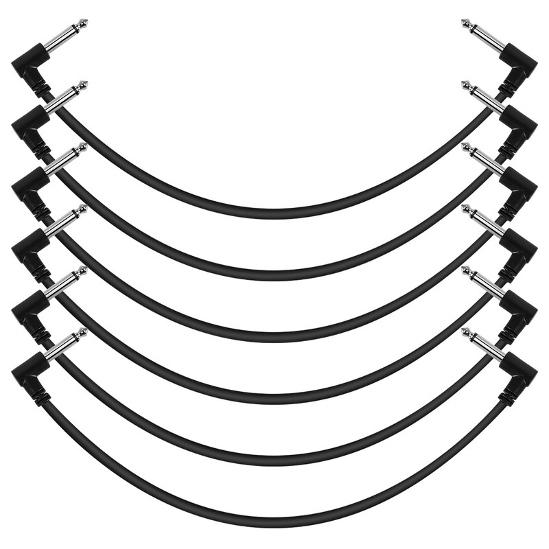 GOGHOST 12 Inch Guitar Patch Cables 6 Pack, 1/4" Right Angle Guitar Effect Pedal Board Patch Cable, Noise Free and Long-Lasting Patch Cords for Pedals, Black