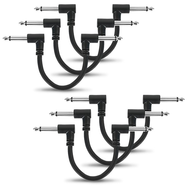 GOGHOST 3 Inch Guitar Patch Cables 6 Pack, 1/4" Right Angle Guitar Effect Pedal Board Patch Cable, Noise Free and Long-Lasting Patch Cords for Pedals, Black