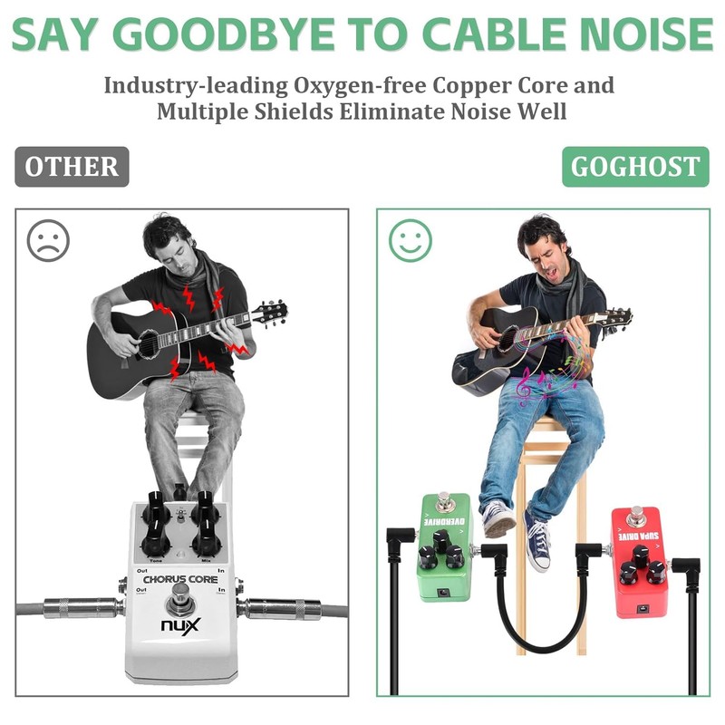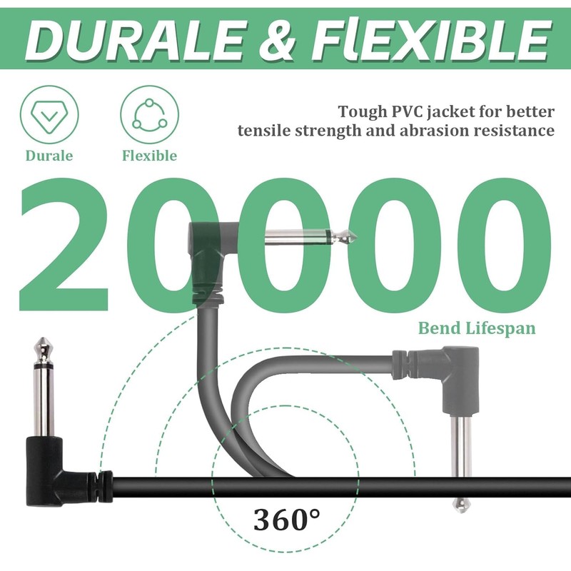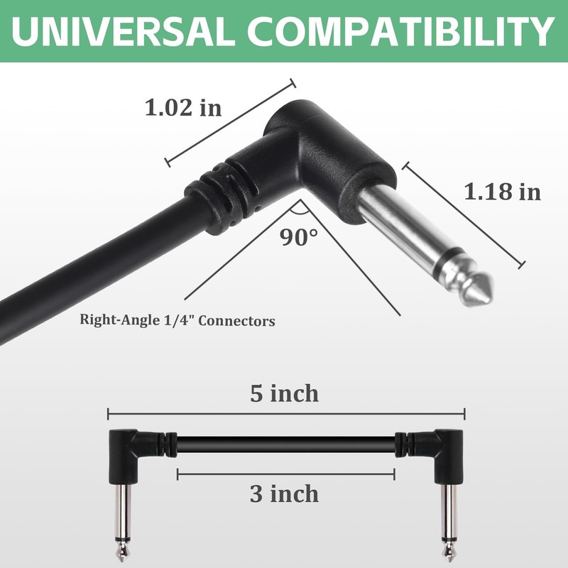 • Elevate your guitar sound with our guitar patch cords. These guitar cords save space and are easier to position with your effects pedals, making them perfect for keeping your pedal board organized and clean.