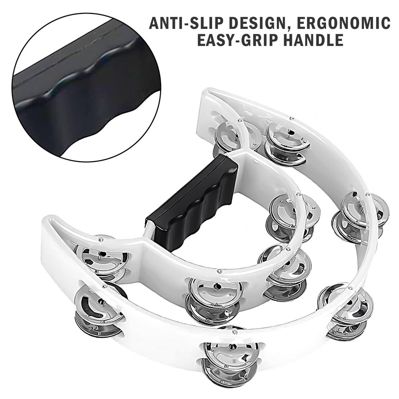 - High Quality Materials - Made of heavy-duty plastic with an ergonomic grip. The edge of the bell is curled, which does not hurt your hands, you can use this tambourine with confidence.