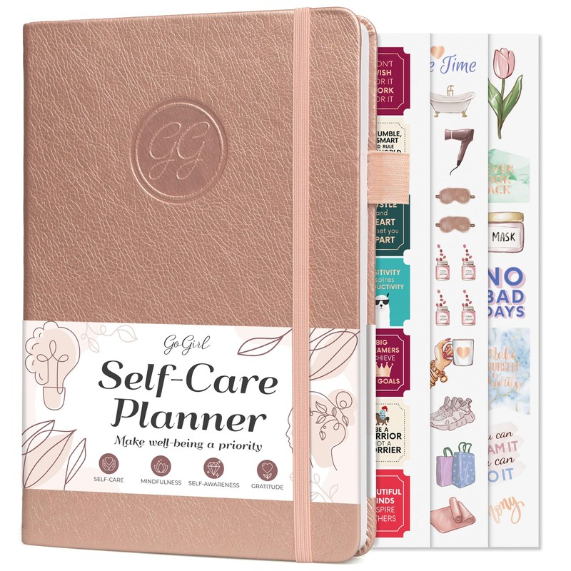 GoGirl Self-Care Journal – Daily Mental Health Notebook with Mood & Wellness Trackers – Personal Development, Meditation & Reflection Journal for Women – Hardcover, Lasts 3 Months (Rose Gold)