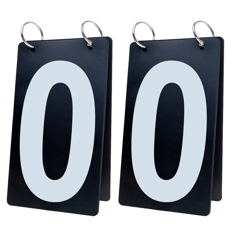 - Double side plastic score reporter, 0-9 available; Price for 2 sets, both are white number on black card; you can have several sets to create any scores flexibly