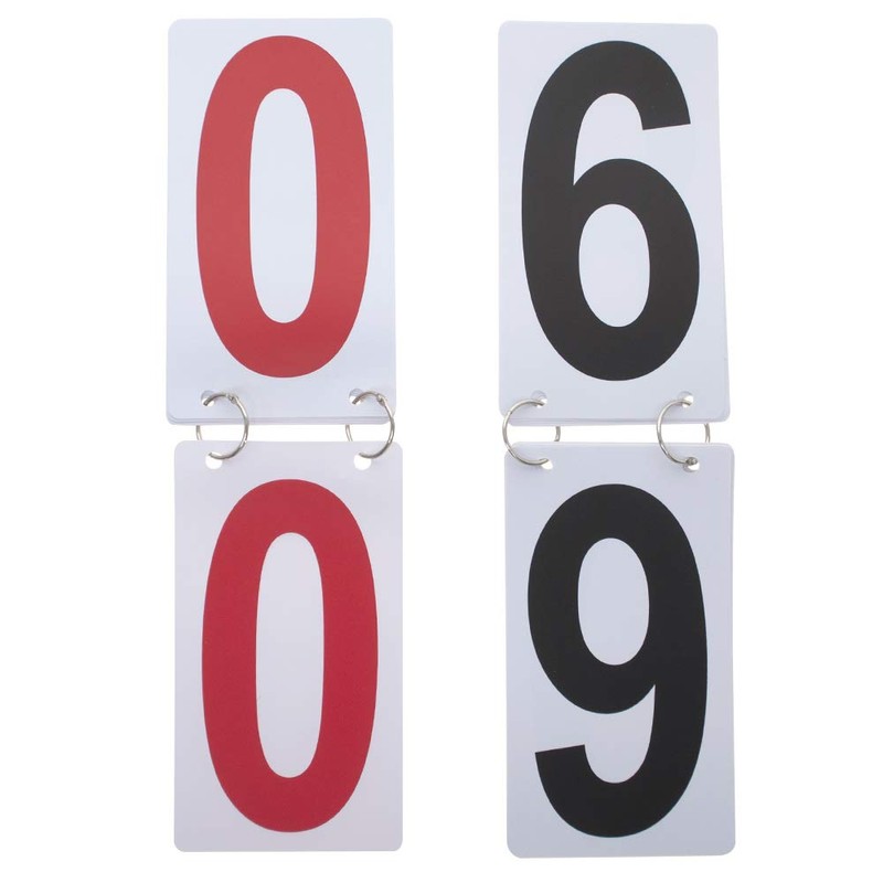 - Double side plastic score reporter, 0-9 available; Price for 2 sets, both are white number on black card; you can have several sets to create any scores flexibly