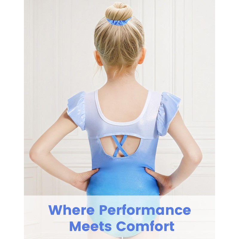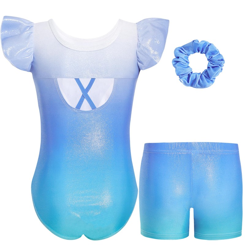 - Flat sleeves and breathtaking design – the flutter sleeves allow freedom of movement without restrictions and combine elegance with practicality. Featuring a gradient sequin and glitter design, this three-piece set adds sparkle and style to your little girl's gymnastic outfit.