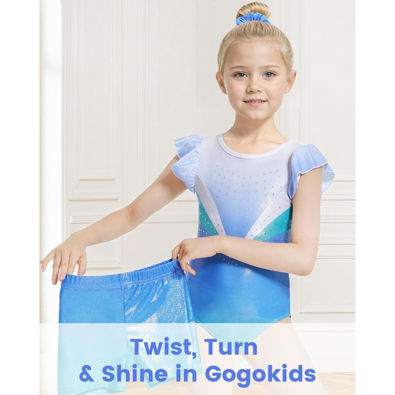 Gogokids Girls' 3-Piece Flutter Sleeve Gymnastics Set - Children's Gymnastics Jerseys with Colour Gradient Sequins & Glitter Design, Gymnastics Costume Set Includes Jersey, Shorts and Headband for 3
