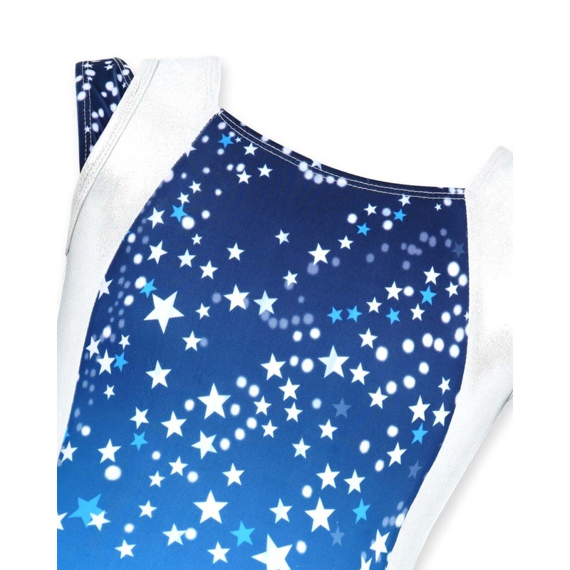 Gogokids Girls' Three Piece Gymnastics Set, Sleeveless Leotard with Shorts and Headband, Ballet Dancing Leotard Gymnastics Outfit with Sparkling for Girls, Sleeveless Jerseys for 3-12 Years, Blue Star