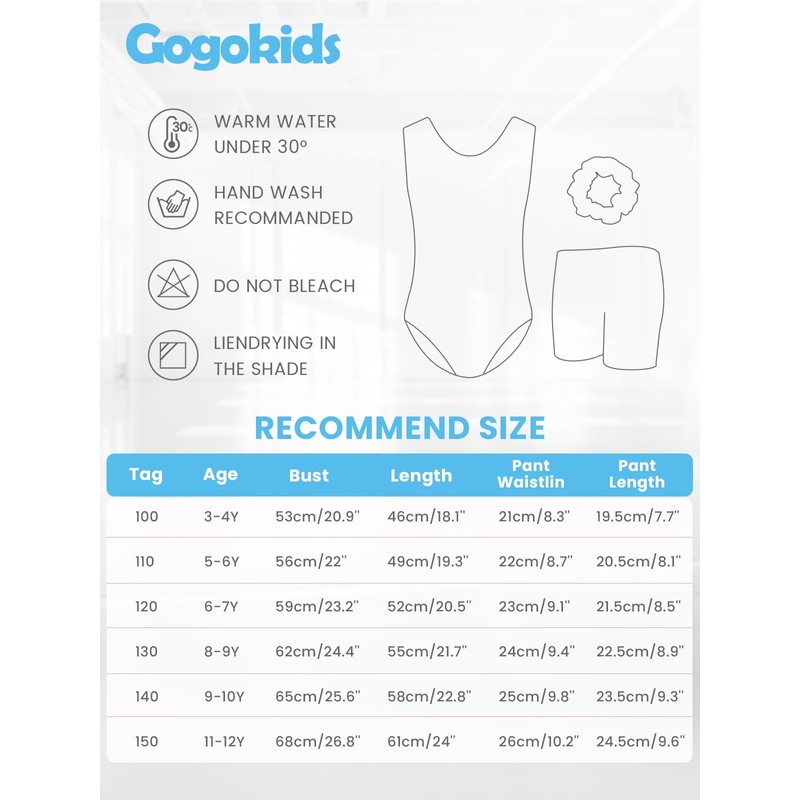 - Three-piece set: our gymnastics set for girls consists of a sleeveless jersey, shorts and a matching headband. This comprehensive set equips your child with everything they need for gymnastics, dance or any other sporting activity.