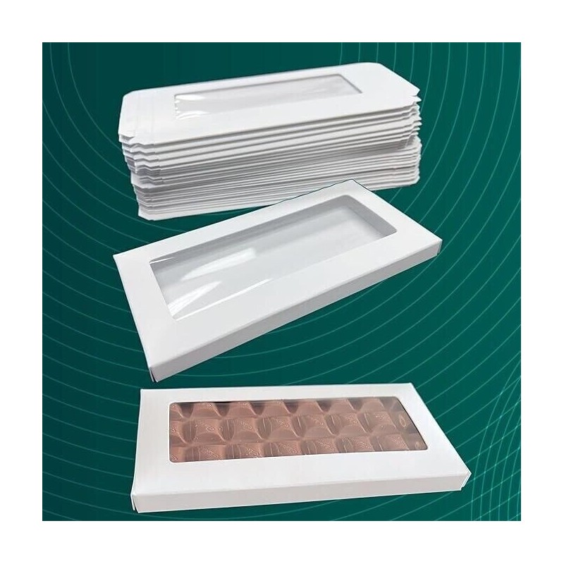 Made in USA. This pack of 50 white chocolate bar boxes with a clear cello window is perfect for packaging and presenting your delicious homemade chocolate bars. Made by GoGoPak in the United States, these boxes are high quality and durable. Ideal for crafters and chocolate makers alike, these boxes can be decorated and personalized to suit any occasion or theme. Whether you're selling your chocolate bars at a market or giving them as gifts to friends and family, these boxes are sure to make a great impression.