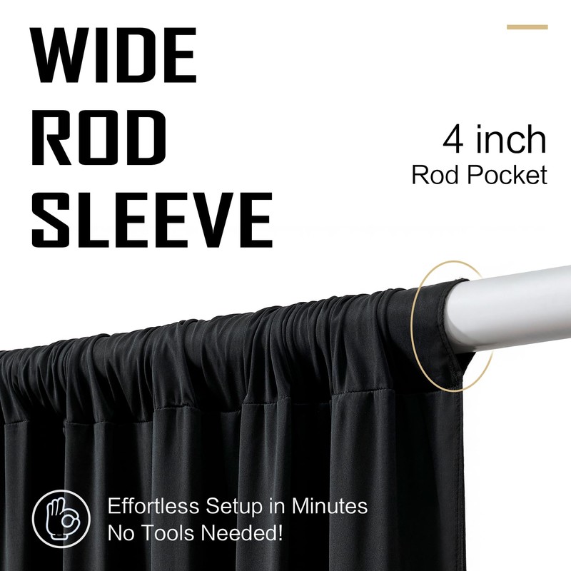 - Complete 10x20ft Coverage | 2 Panels Included:Each pack includes 2 black drapes (5ft x 20ft each), providing total 10x20ft coverage. Ideal for large spaces like wedding tents, party ceilings, or stage backdrops - effortlessly creating a cohesive, elegant atmosphere for any event