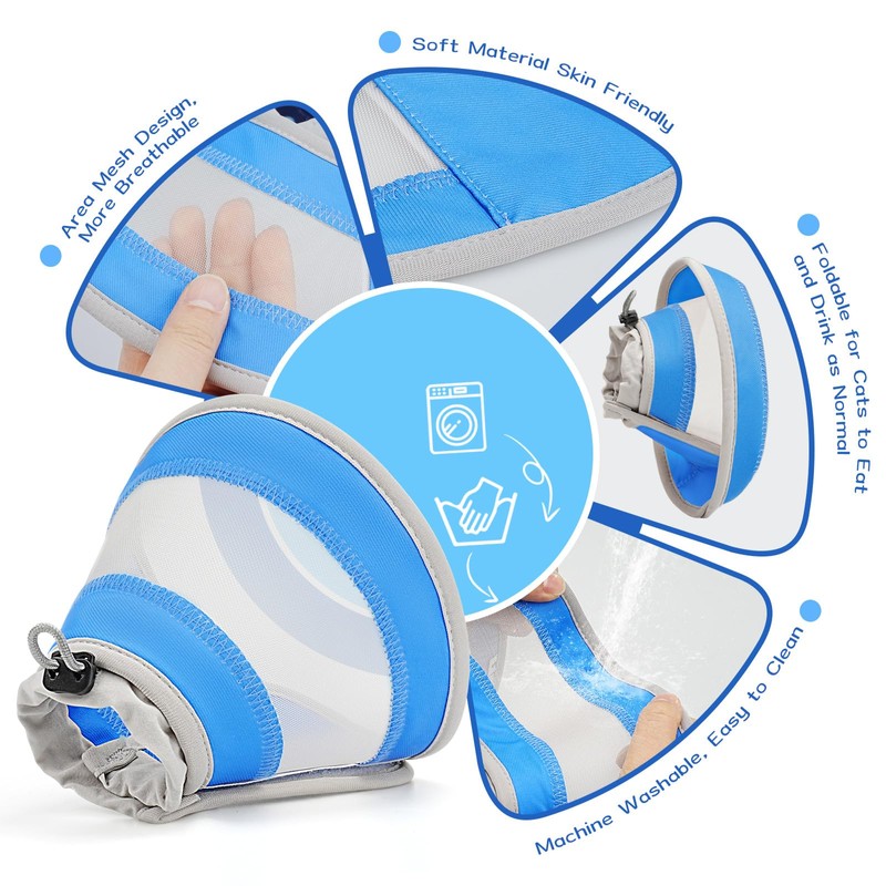 - Air Mesh Design Cat Cone: The e collar for cats is crafted with premium fabric and a breathable hollow grid, extra comfort. Your loved cat won't feel any pressure or discomfort while wearing it. Moreover, the kitten cone doesn't obstruct vision, unlike traditional pet cones for cats that block the view, causing secondary injuries by bumping into objects. The cat cone alternative allows cats to eat normally, sleep peacefully, and play happily, just as if they weren't wearing anything