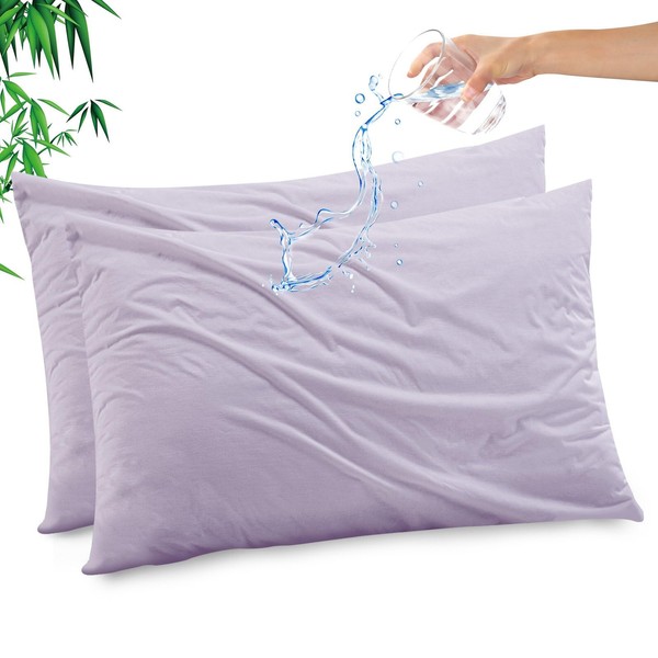 Gogreen Bamboo Rayon Waterproof Pillow Protector, Breathable Pillow Cover, Cooling Pillow Case with Zipper, Super Soft Pillow Case Cover with Zipper (2 Packs, Standard 20"x26", Lavender)