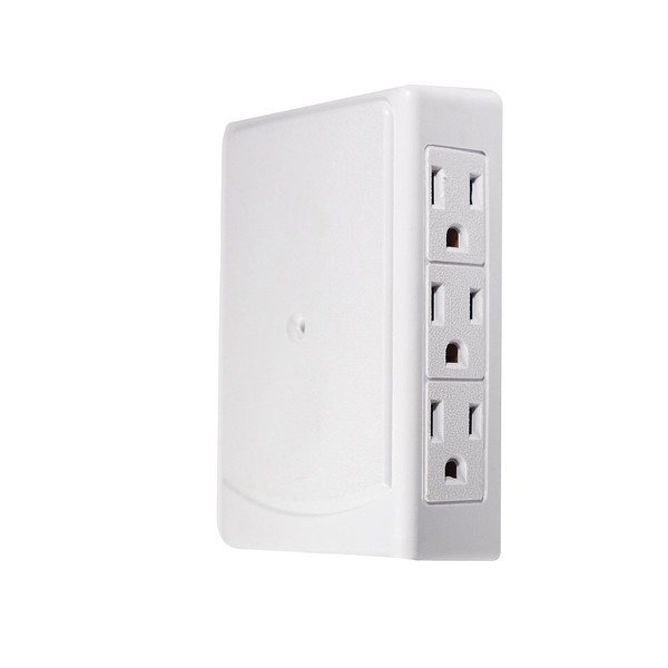 Go Green Power Inc. 6-Outlet Side Mount Wall Tap Adapter, White - Unique Space-Saving Design, Heavy Duty, Versatile - Perfect for Tight Spaces and Home Use - GG-16000TSM