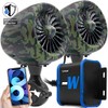 GoHawk TJ4-W Camo Green Waterproof Amplifier 4" Full Range Bluetooth Motorcycle Stereo Speakers 1 to 1.25 in. Handlebar Mount Audio Amp System Harley Touring Cruiser ATV 4-Wheeler, USB, AUX, FM Radio