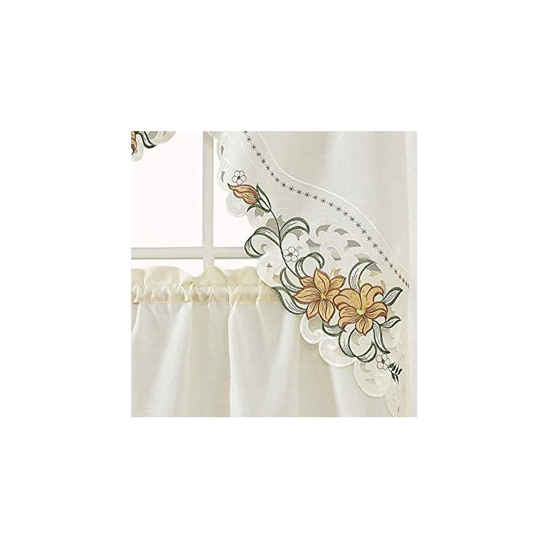 GOHD Lily Fragrance. 3pcs Multi-Color Embroidery Curtain/Cafe Curtain/Swag & Tiers Set with cutworks. (Gold)