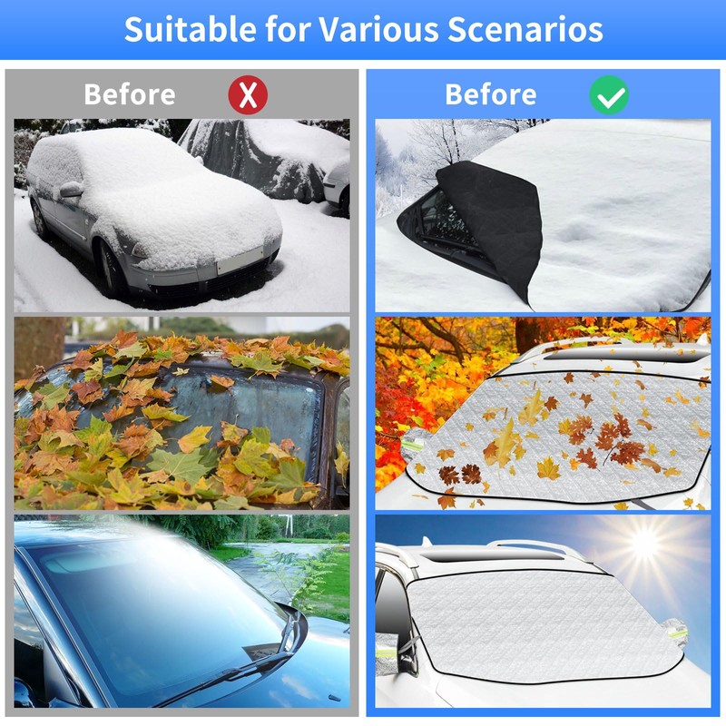 • RUNDUMSCHUTZ WINDSCHUTZSCHEIBENABDECKUNG ALLE JAHRESZEITEN: Sonnenschutz für auto frontscheibe schützt Ihr Auto das ganze Jahr über. Im Winter kann es Schnee / Eis / Frost blockieren, schützt die Scheibenwischer perfekt vor Schnee und Eis, reduziert die Zeit für das Kratzen von Eis oder Schnee am Morgen. Im Sommer blockiert sie die Sonne, die UV-Strahlung und hält Ihr Auto kühler. Schutz vor Blättern, Regen und Flecken im Frühjahr und Herbst.