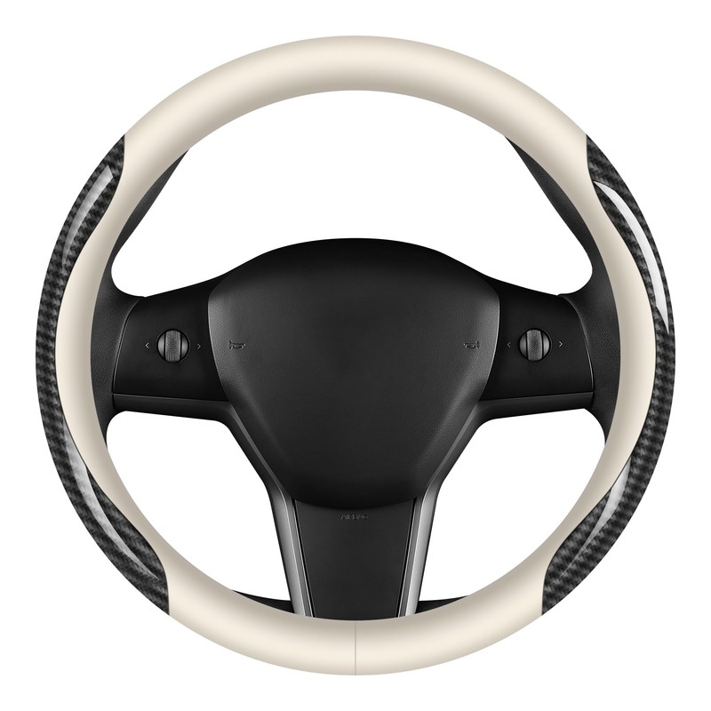 GOHI YANDA Nappa Leather car Steering Wheel Cover,Carbon Fiber Sports car Interior Non-Slip Ultrathin 15 inches Universal (White)