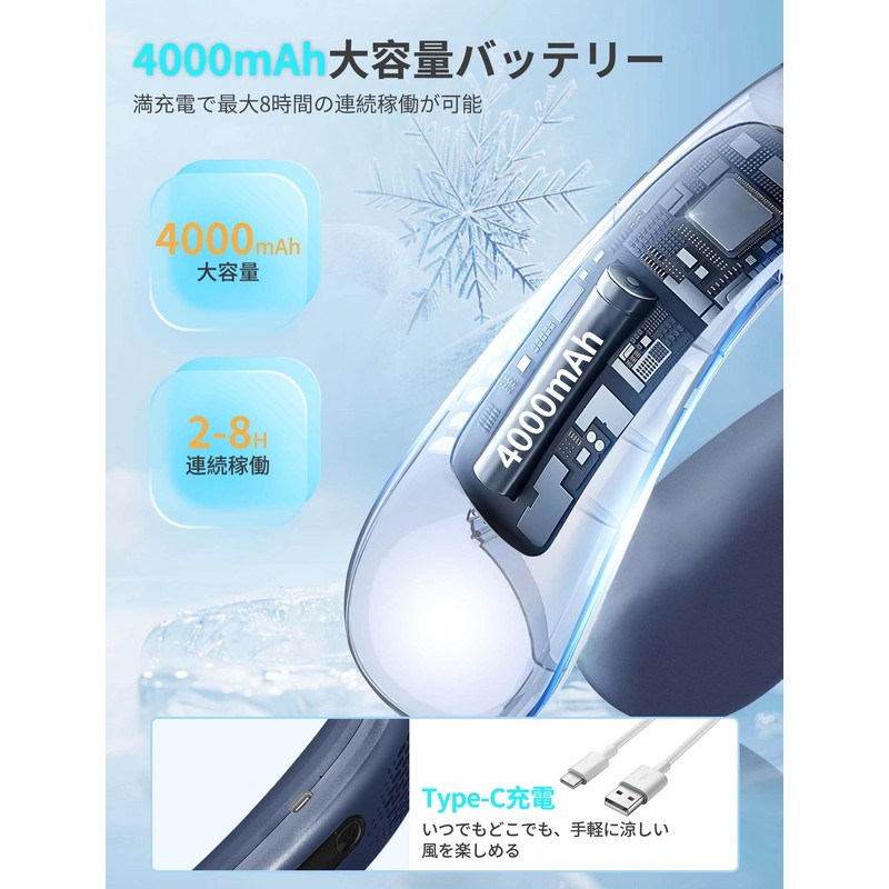 - 4,000 mAh High Capacity Battery / LED Display: Equipped with an LED screen on the side of the neck cooler, the remaining battery level is displayed in numbers and you can also check the driving mode at a glance. There are 2 operation buttons, and you can press and hold the switch to turn on and off. Built-in 4000mAh lithium-ion battery for long use on a single charge. Since it is USB rechargeable, you can use it with confidence when you go camping, traveling, business trips, etc