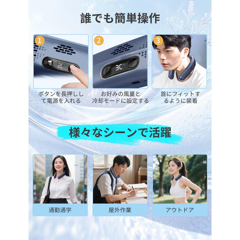 - 2025 release! Rapid Cooling Neck Cooler: This is the latest neck fan in 2024 with a cooling function. The cooling plate sits on the back of the neck for a comfortable cooler, and the cooling plate keeps you cool at a minimum of -4°F (-20°C). It sends out the breeze that feels really cold and maintains a comfortable temperature by six wide air vents! Over twice the cooling area of previous products to cover the neck area of your neck for a soda-like cooling sensation. Stay comfortable even in the hot summer!