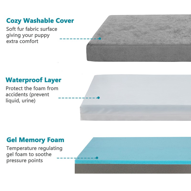 GOHOO PET Orthopedic Memory Foam Dog Bed, Cooling Dog Beds Waterproof Pet Bed for Crate with Removable Washable Cover, L(35inch,65Lbs)