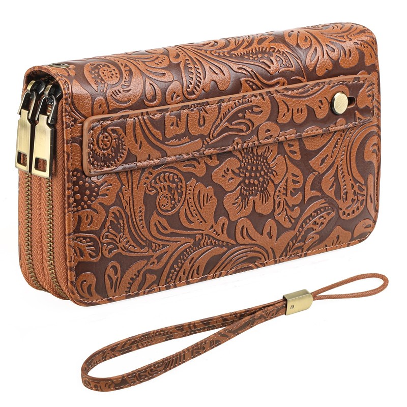 - Double zipper: This spacious double-zipper purses features two independent zipper compartments, providing maximum space for organising your essentials. It includes 24 card slots for various cards; 4 full-length side slots for receipts or tickets; 4 full-length internal slots for cash or a phone and 1 zipper pocket for coins and change