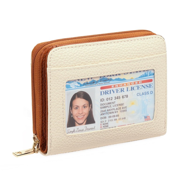 GOIACII Women's Small Leather Compact Wallet RFID Protection with Zip Wrist Strap, beige