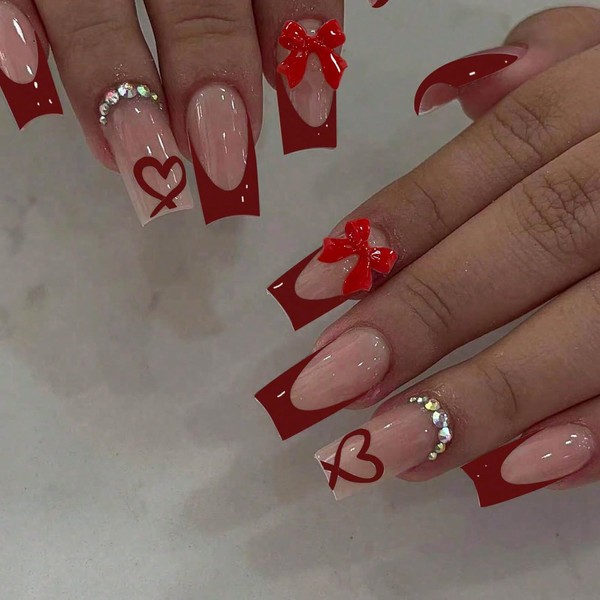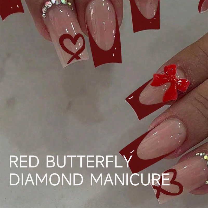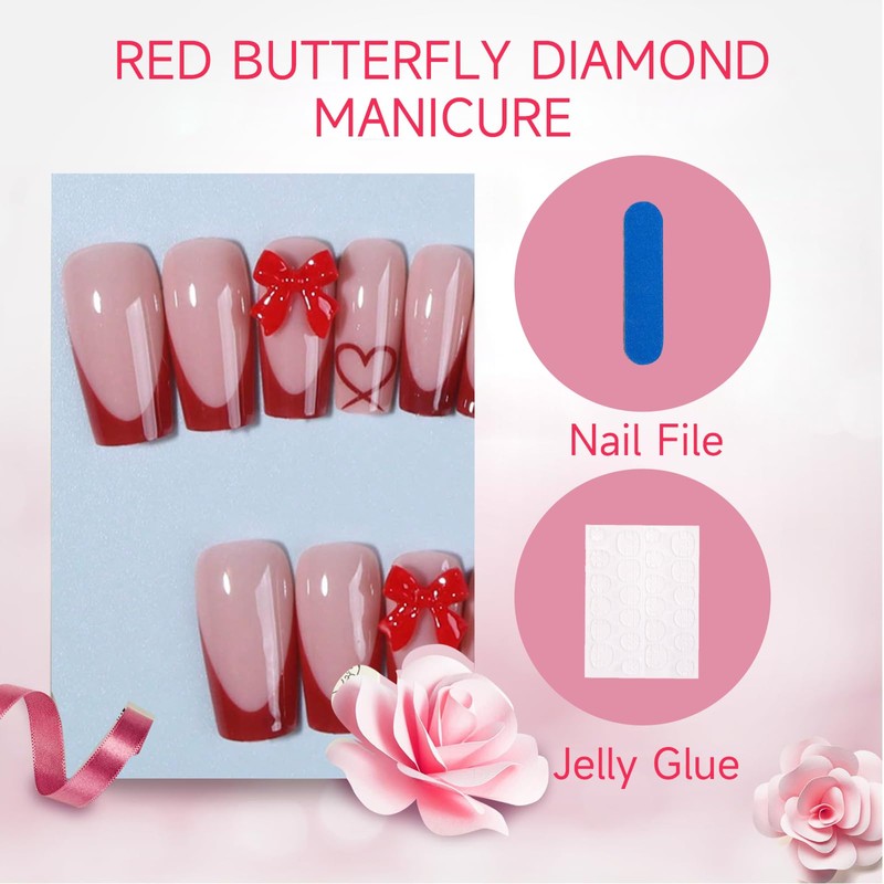 - French Tip Nails: Das Paket enthält 24 Stück Rot lange quadratische Aufkleber-Nägel und einen Nagelfeile sowie 24 Stück Gelklebeaufkleber Die Haltbarkeit des Gelklebeaufklebers ist nicht so gut wie die von Flüssigkleber aber er ermöglicht die Wiederverwendung der künstlichen Nägel|Bitte verwenden Sie je nach Anlass den passenden Kleber