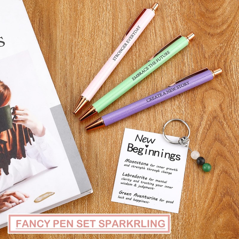 - POSITIVE ENCOURAGEMENT GIFT:The new beginning gifts set include crystal keychain and fancy pens is perfect gift ,the unique gift can help you or your loved one get through the rough patches.When people get divorced, fall out of love, get clean, leave a job, have a miscarriage, et. then you can sent the new beginning gift to her for companionship, encouragement, blessings