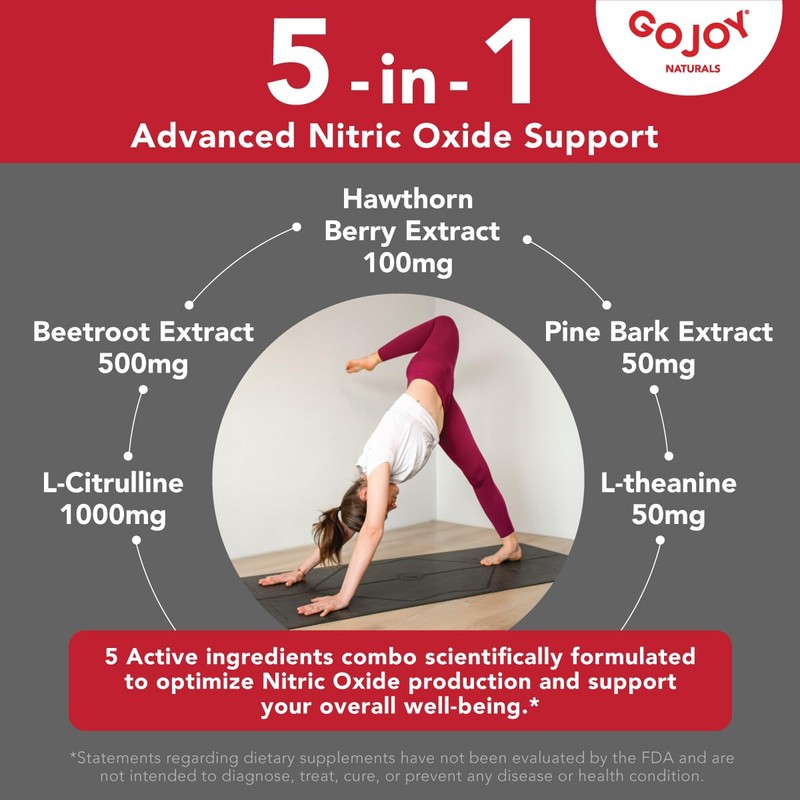 GOJOY NATURALS Vegan Sugar Free Nitric Oxide Gummies with Beet Root, L-Citrulline, Hawthorn Berry, Pine Bark - Nitric Oxide Supplements for Men & Women (60 Count)