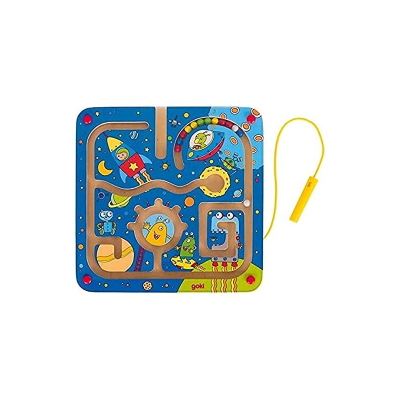Goki 53817 Magnetlabyrinth Weltall aus Holz, Mehrfarbig, M
